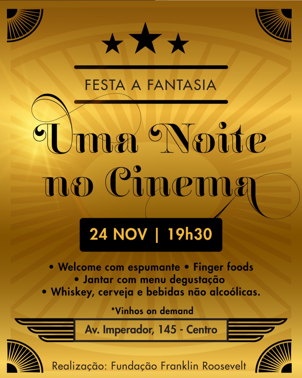 Repetindo o sucesso do ano passado, no dia 24/11 (sábado) a Fundação Franklin Roosevelt vai promover uma festa à fantasia com a temática Uma Noite no Cinema II no salão de banquetes da Grande Loja Maçônica do Estado do Ceará, na Av do Imperador № 145.